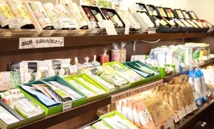 季節のごあいさつやお祝い、仏事などの贈り物にも最適です。喫茶スペースは、和の趣を感じられる隠れ家的な空間。