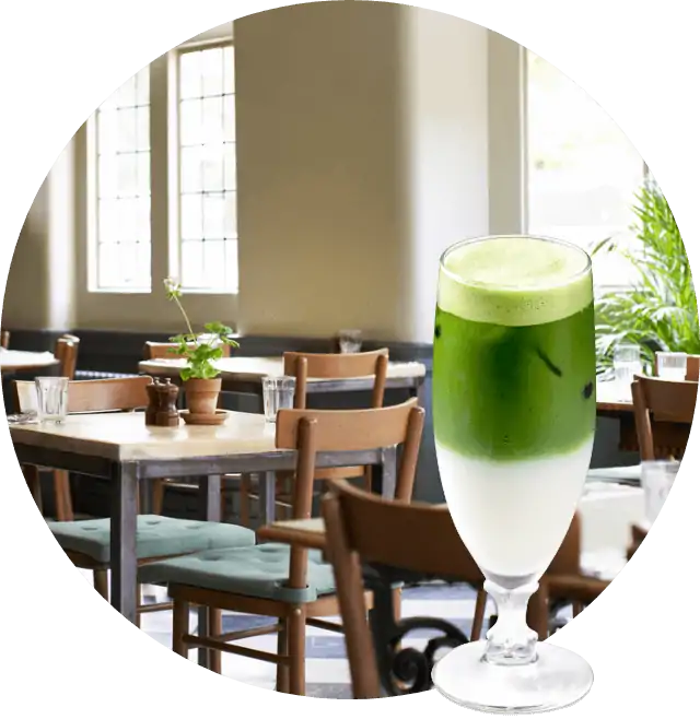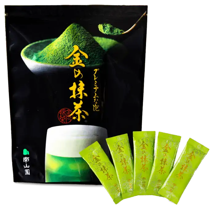 「金の抹茶」は、一番摘みの茶葉を石臼で挽いた西尾の抹茶です。 創業当時から守り続けている伝統的な製法にこだわることで、 口当たりのよいクリーミーな泡が生まれます。